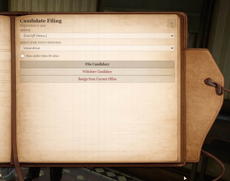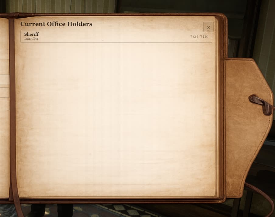 - Voting — Players receive a period-accurate hand-printed paper ballot at any Government Office NPC and cast their votes