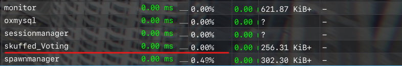 - Low client resource usage (0.00 CPU msec and 0.00 Time % with extremely minor fluctuations during actual vote creation/voting)