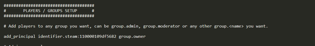 Another weird thing is that even if I assign myself, group.owner, using steam identifiers, it still won’t give me any permissions. I thought at least if I manually assign myself, group.owner, it would work, but apparently not.
