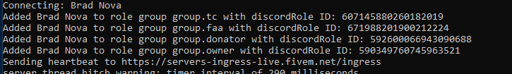 Has anyone had this issue? Is my permissions.cfg not working correctly? Is DiscordAcePerms not working correctly? I have no idea. I am using a VPS and I really hope anyone who has dealt with this before can help me.