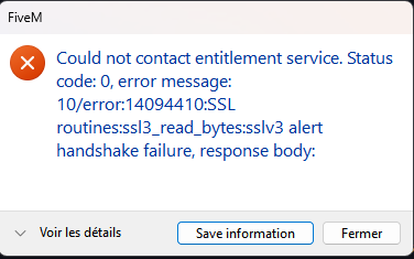 Some times, after testing some solution, FiveM randomly launch and after try to connect to a server, open an error curl 35.