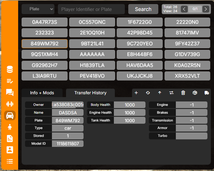 - When in admin duty mode, you gain access to additional controls by pressing “E” while targeting a player or vehicle. This opens a menu with detailed information about the selected entity.