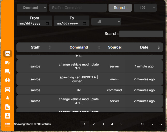 - A private chat for admins. Admins can tag specific players by using “@id”, which when clicked it directs the staff to the player’s profile on the player list page.