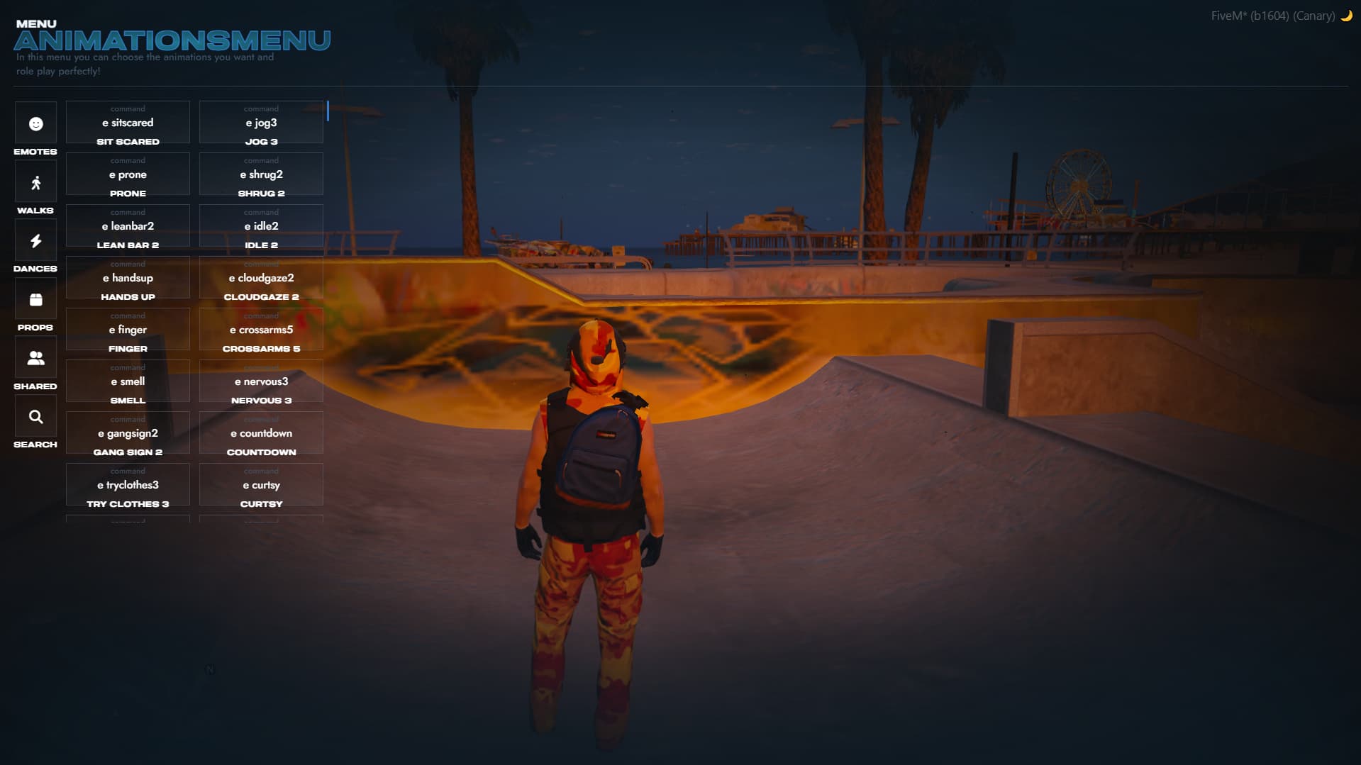 What’s my problem? It’s simple. All custom props and animations were provided with permission from the creators. These usage rights do not allow you to reupload or sell the menu in any way shape or form, or extract the animations from RPEmotes .