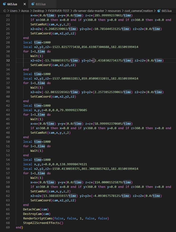 This script should be used more as a tool than actual script. It provides basic camera movement like go from point A to point B in some amount of time. I am using this script to help me develop some missions that otherwise would be a pain in the butt to create cameras each time.
