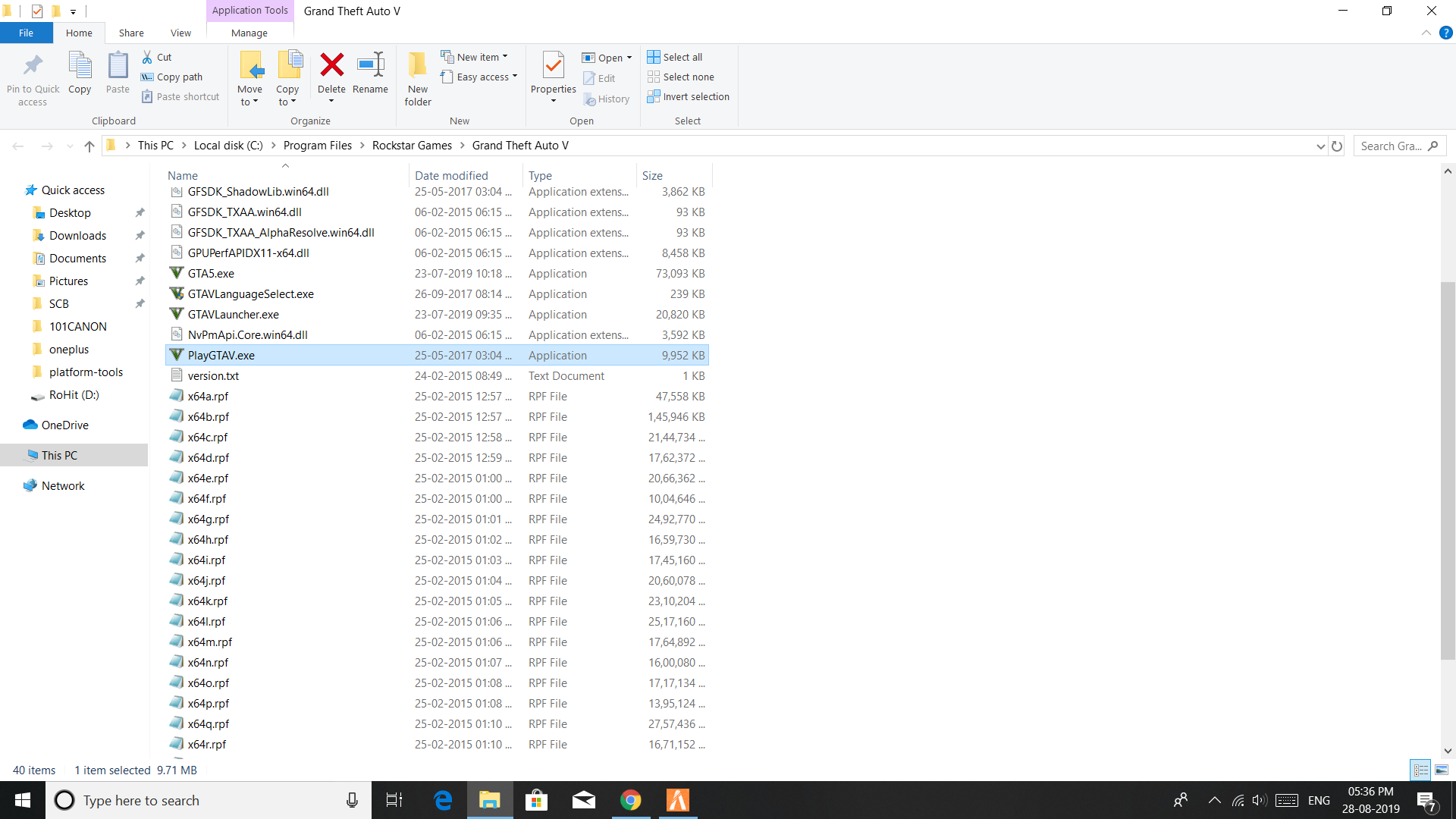 If an issue with starting: GTA V folder screenshot