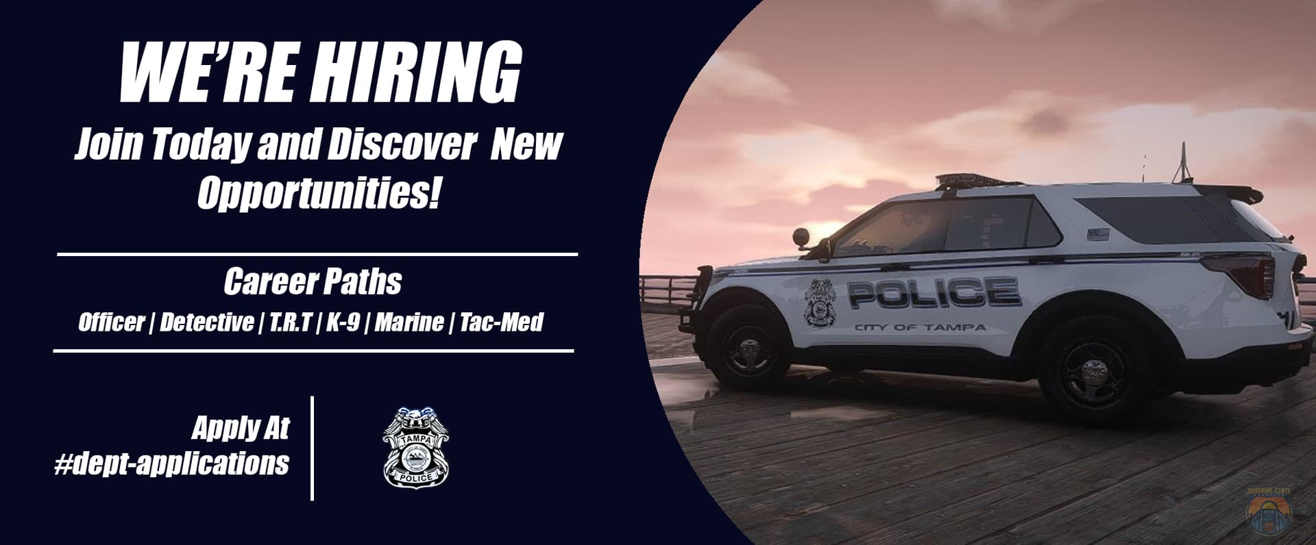 Make sure you join our Discord at Sunshine State RPᵀᴹ and either join a department or get in touch with a member of our Staff team to get the process started. Thank you and we look forward to seeing you!