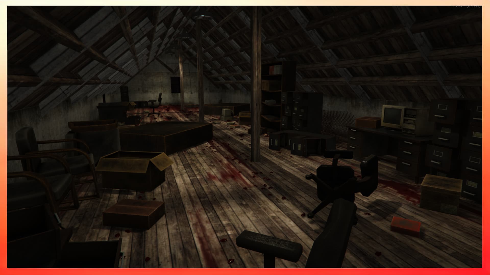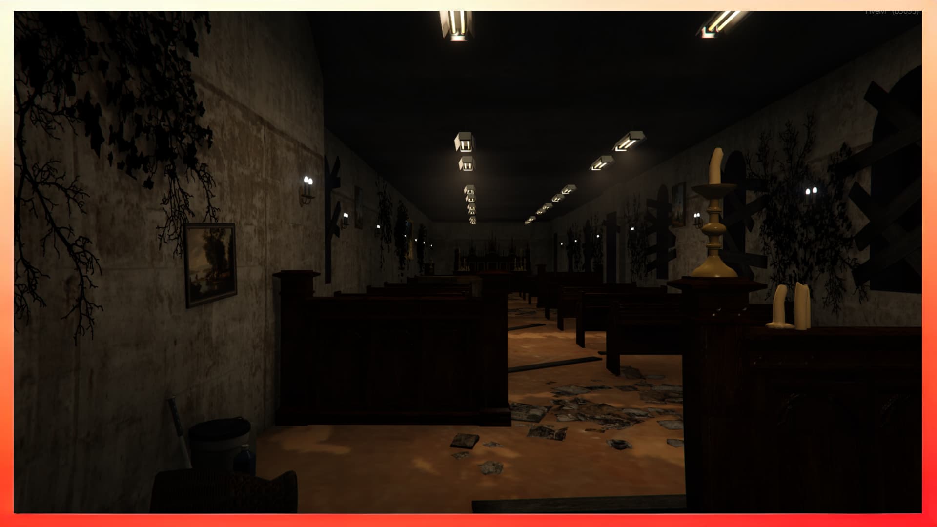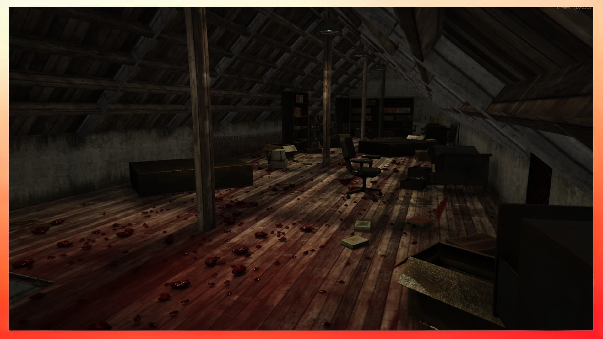- Dark lighting, and horror-style environmental storytelling.