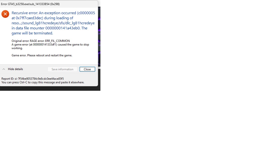 CitizenFX crash zip file (‘Save information’ on a crash)