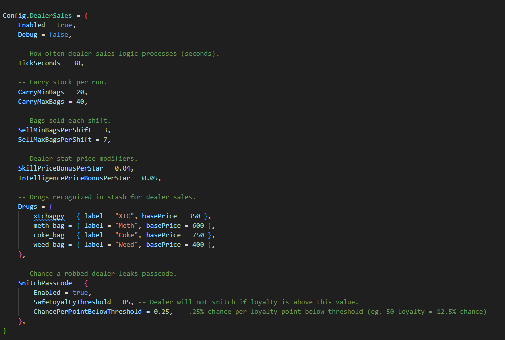 Advanced dealer system (shifts, loyalty, cut %, hiring/firing, robbery flow)
