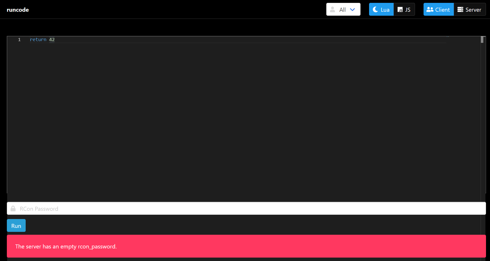 On a live server, it’s better not to use runcode at all. Remove the rcon_password line from server.cfg and disable runcode. Or make sure you set a very strong password and change it periodically.