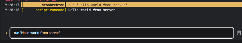 Since you launched the RunCode tool, you now have the ability to enter a command to execute a server script. This command is: