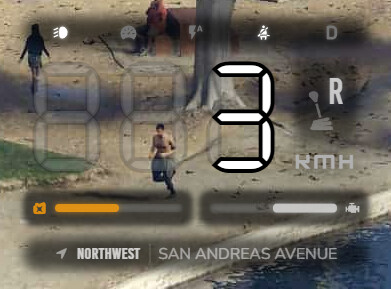 Shows speed, RPM, engine status, and fuel level. If you’re in an emergency vehicle and turn on the sirens, the carhud applies a siren effect.