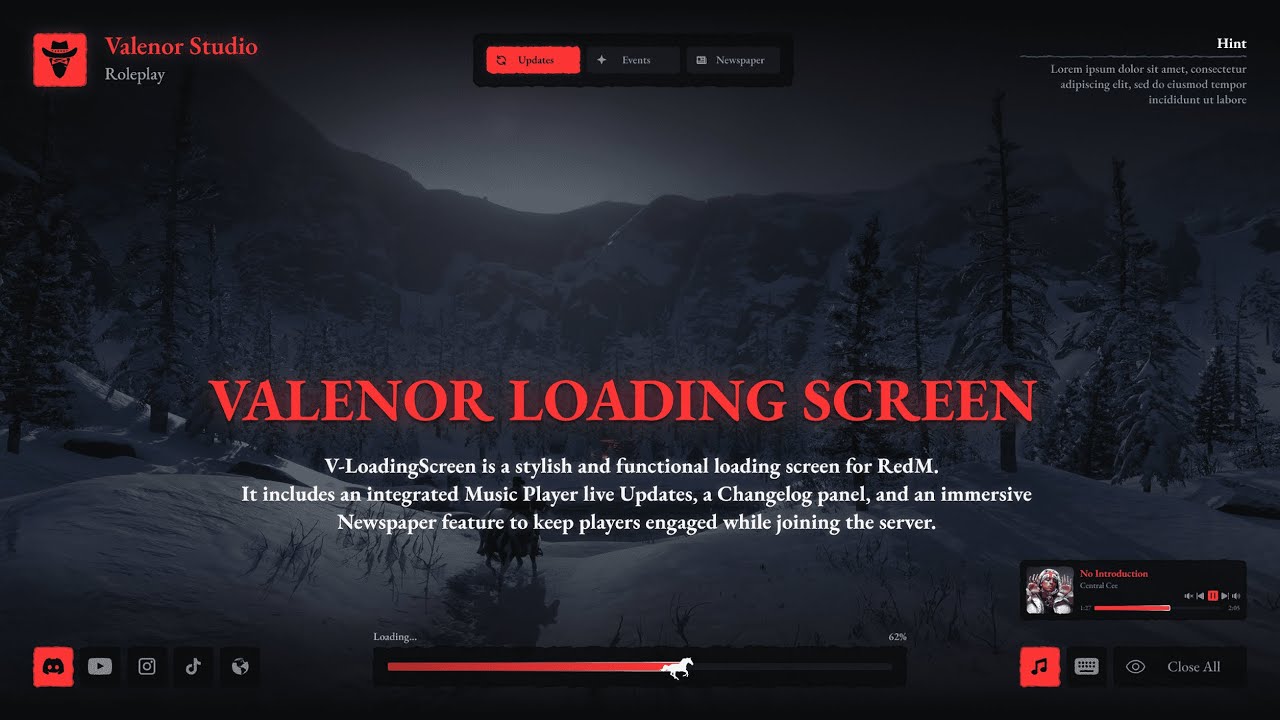 V-LoadingScreen is a stylish and functional loading screen for RedM.