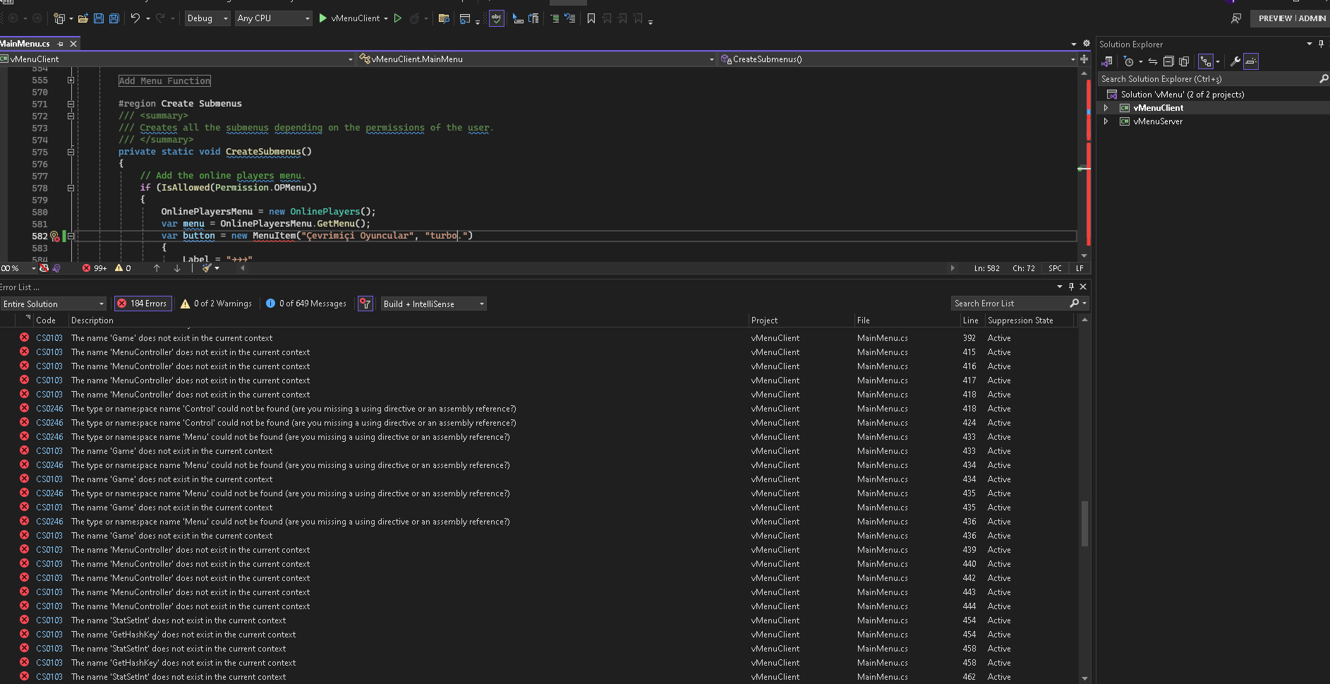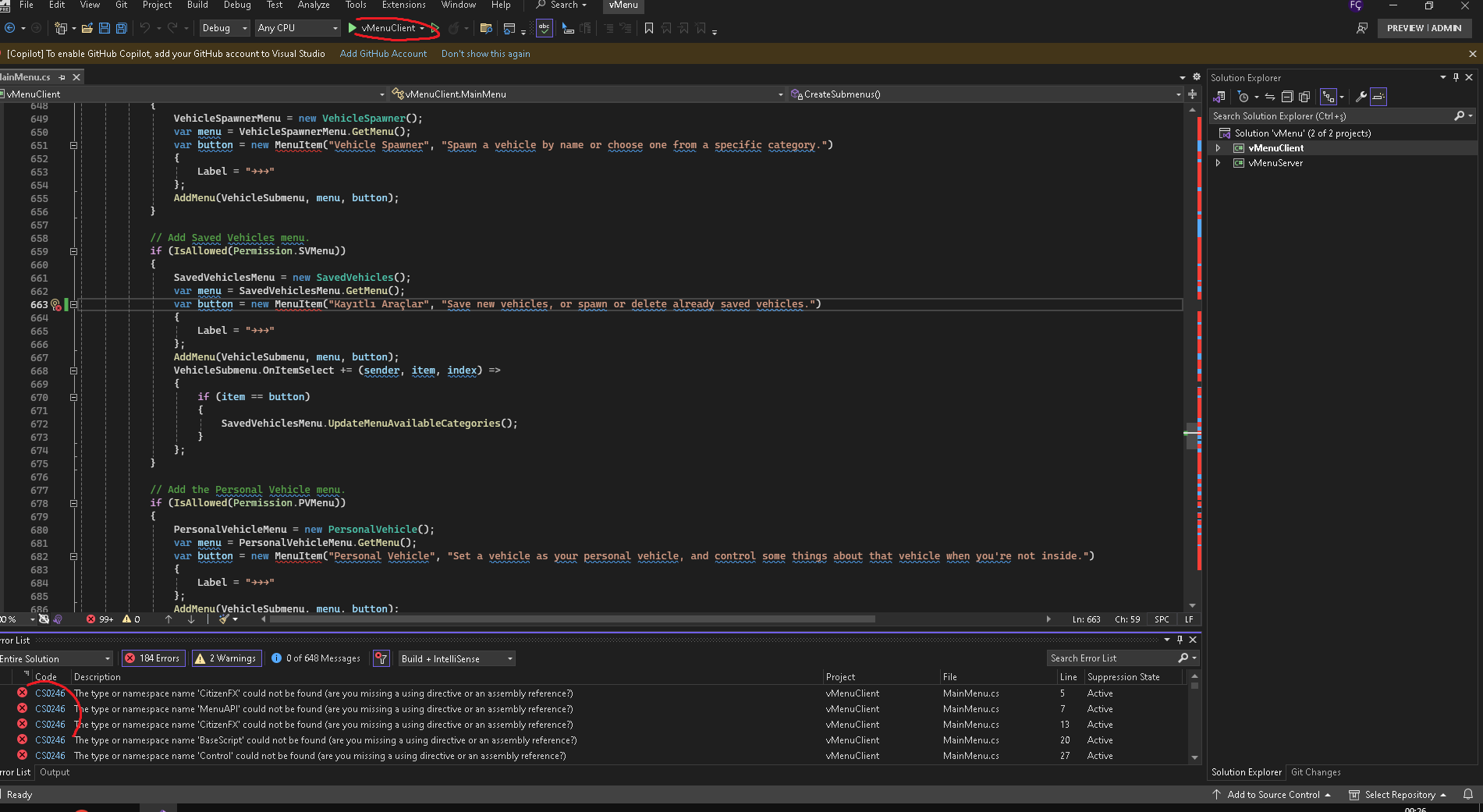 vmenuclient not compiling after editing v menu.