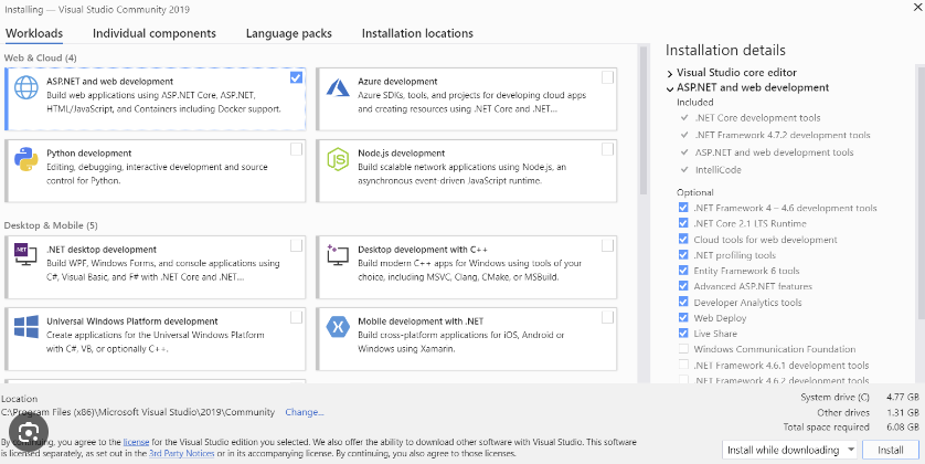 You need the .NET Desktop Development and probably Universal Windows Platform development.