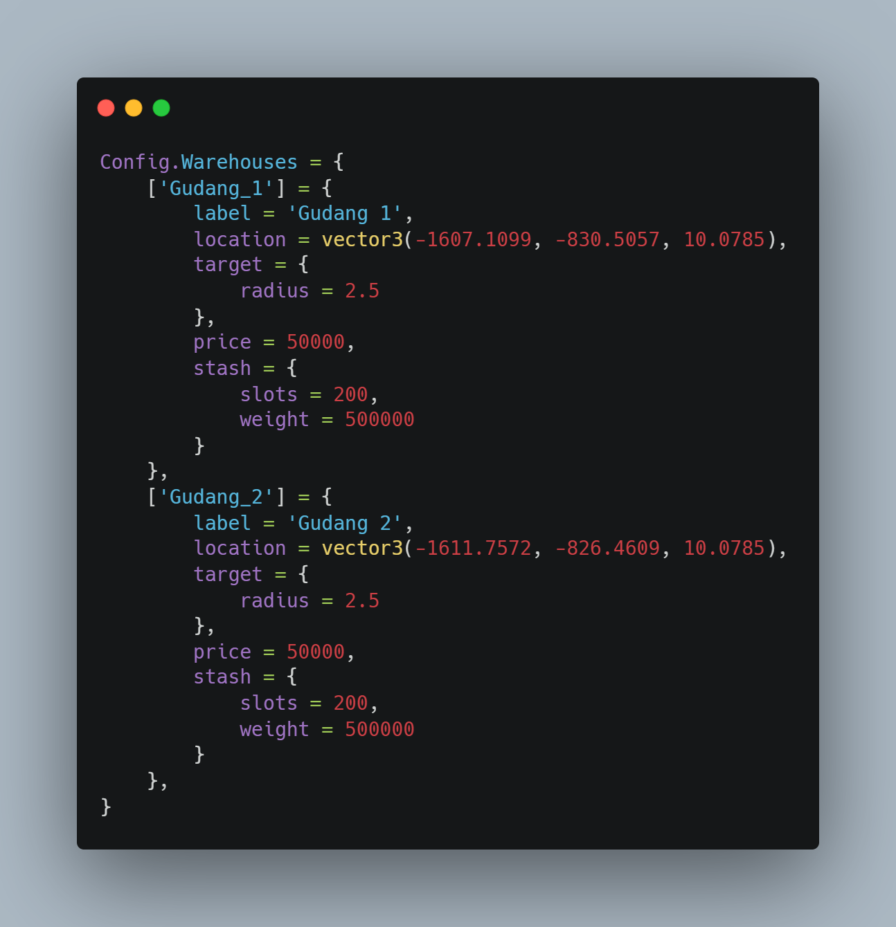 config.luato fit your pricing, names, and translation - Start the resource after its dependencies