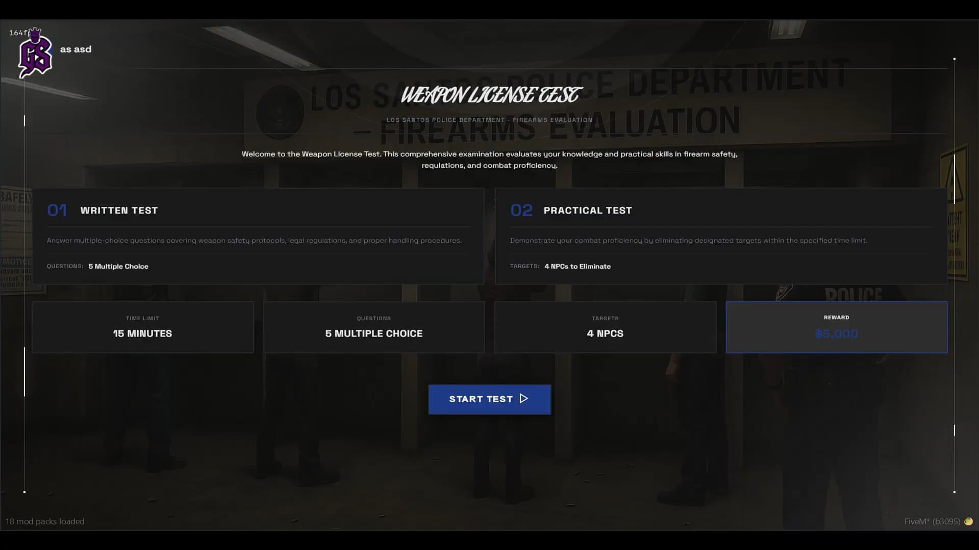 Introducing a Sleek UI, 0.00ms resmon, and a fully functional Weapon License Exam paired with a simple, optimized Paintball system.