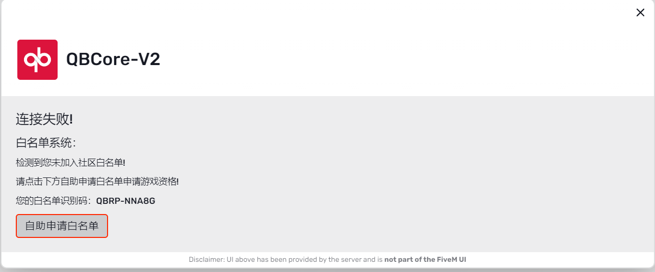 - When it detects that you are not included in the whitelist, it will pop up a prompt card that will display your whitelist identification code.