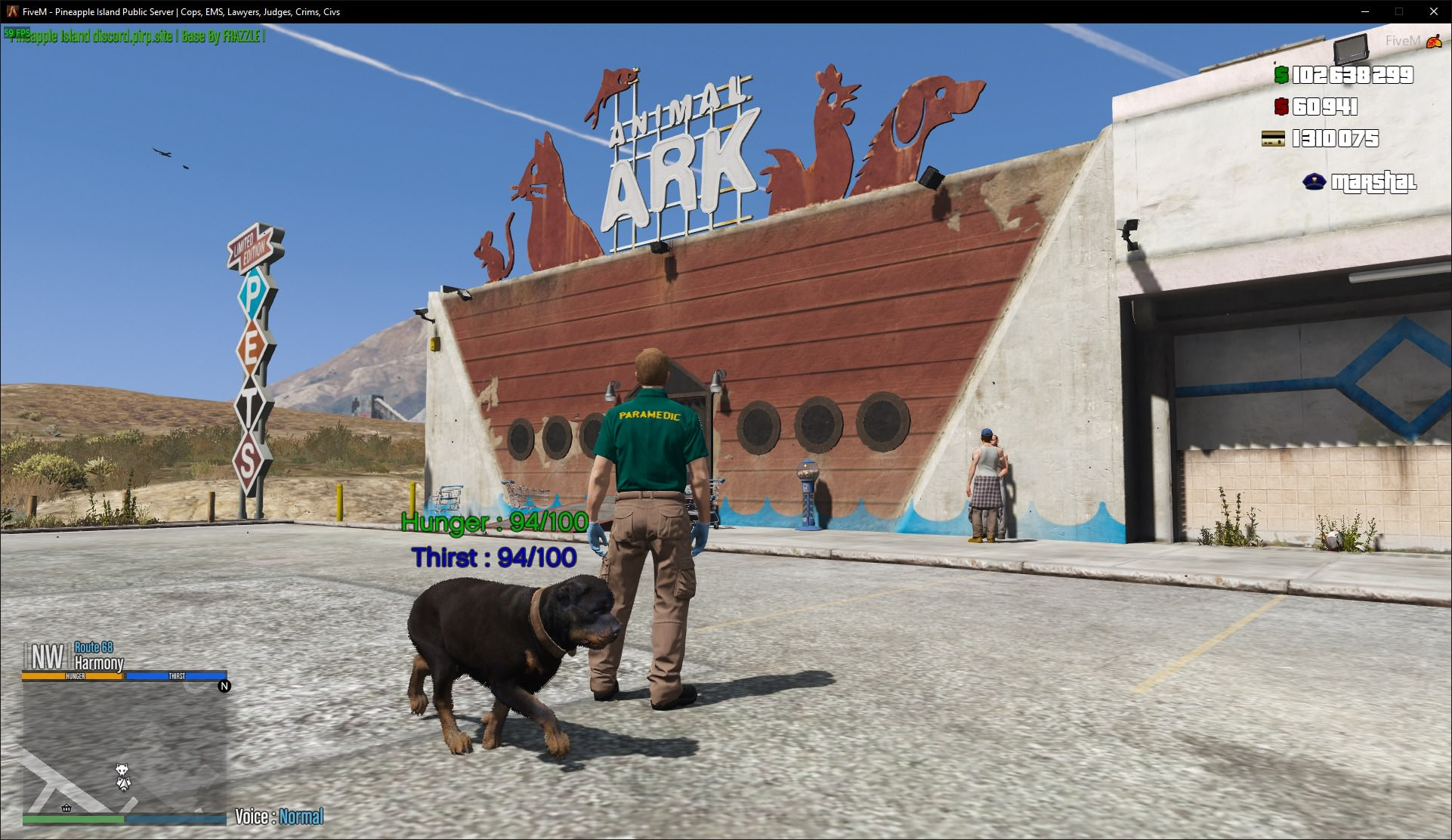 TriggerClientEvent("togglePet",type) - Toggles the dog, the types can be "Rottwieler","Huskey","German Shepard","Golden Retriever"