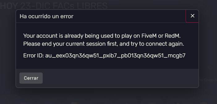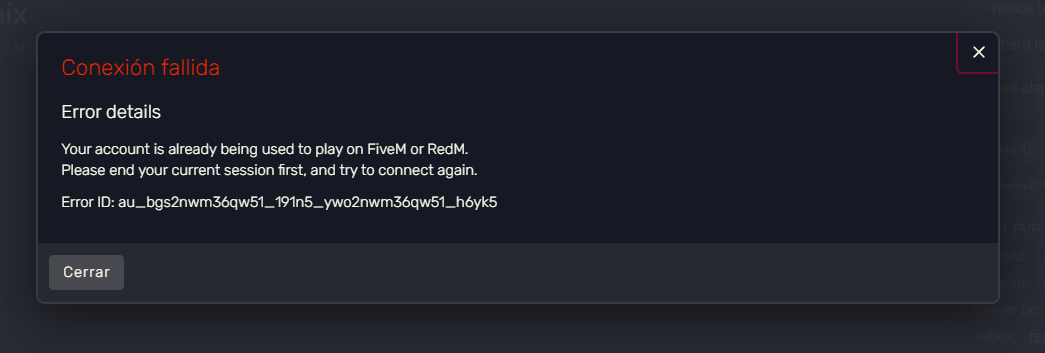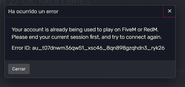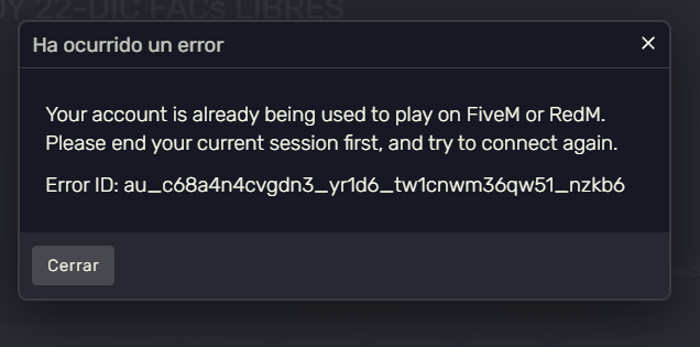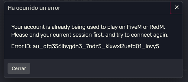 Your account is already being used to play on FiveM or RedM.